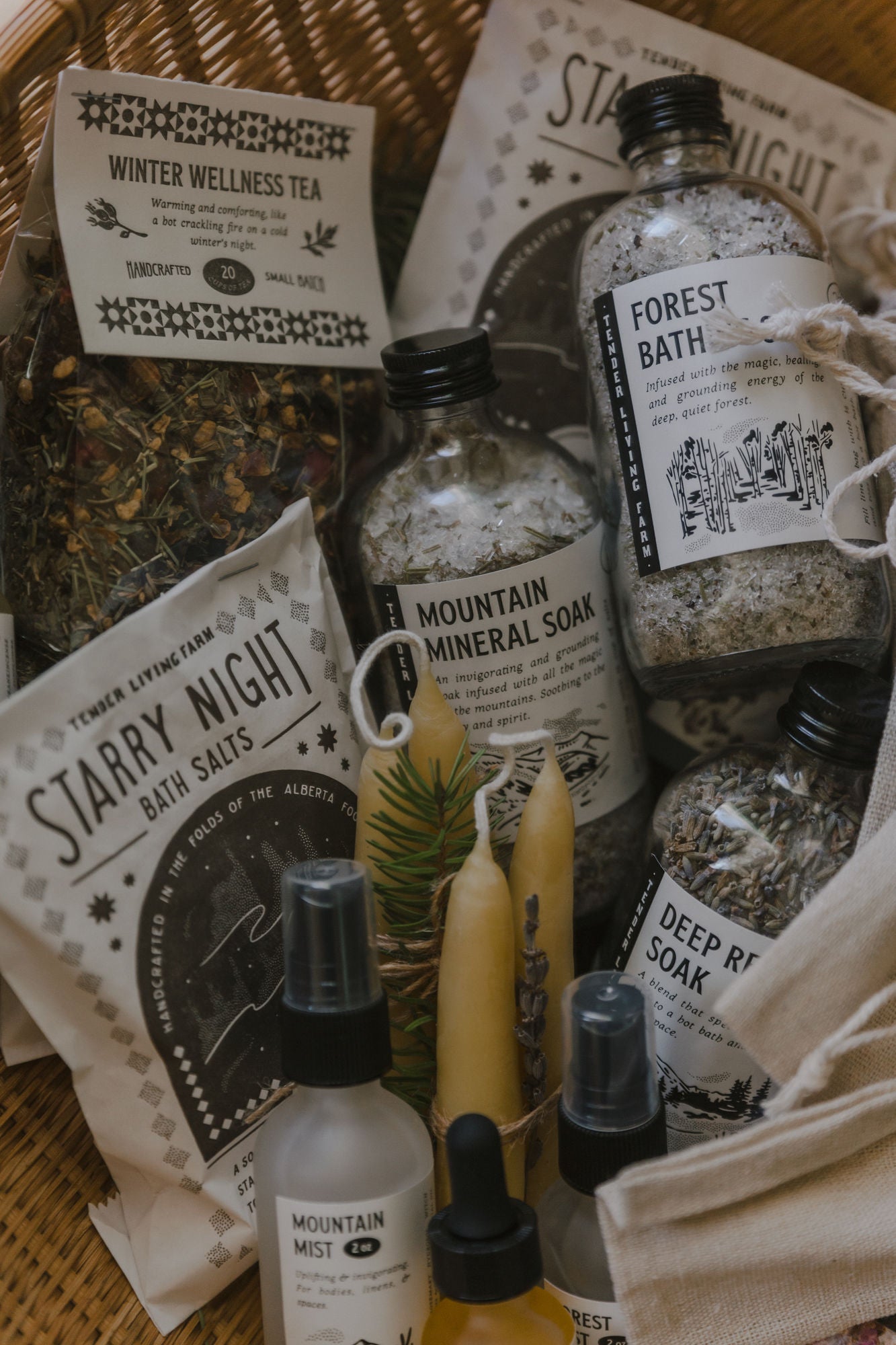 Our teas, bath soaks, tinctures, body oils, and salves are thoughtfully crafted with ingredients grown and foraged in the beloved Sheep River Valley. May they create quiet moments of ritual, ease, and connection for you and your loved ones as they support you through all seasons.